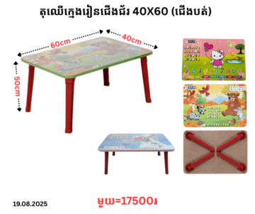 តុឈើក្មេងរៀនជើងជ័រ QP 40×60 (ជើងបត់)
