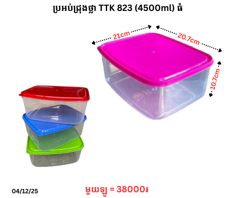 ប្រអប់ជ្រុងថ្លា TTK 823 (4500ml) ធំ